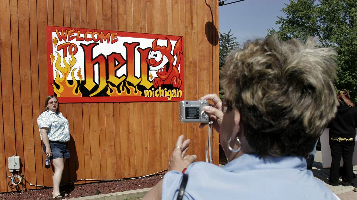 “When you get married in Hell, there’s nowhere for your marriage to go but up,” the Rev. Yvonne Williams, who will be officiating the mass knot-tying, tells the Detroit Free Press.